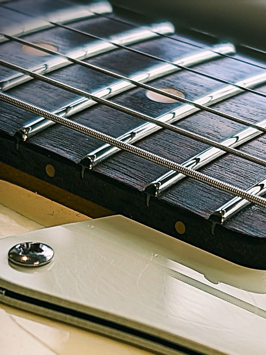 - Frets are then levelled with a precision ground flat sanding beam.